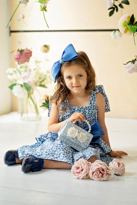 Панделката Sky Bouquet е създадена да завърши перфектно визията. Изработена от същия памучен плат със сини цветчета като роклята, тя е едновременно нежна и стилна.
