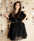 Emera е нежен аксесоар в черно. Изработен специално за нашата бляскава рокля от черна дантела Emera. Панделката е на клипс.