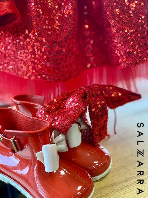 Scarlet Tale е рокля, изработена от прекрасни червени пайети. Модел с един дълъг ръкав, а на другото рамо се връзва със сатенени връзки. Долната част е разкроена, с богат тюл отдолу за обем. Акцент в роклята е красивата панделка на рамото от плата.