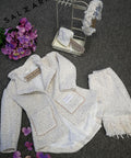 Блейзерът Pearl Tale е изработен от висококачествено букле с фини пайети.Модел с изчистен дизайн, издължена задна част и декоративни джобове. Комбинира се прекрасно с полата Ivory Whisper за завършен луксозен сет.