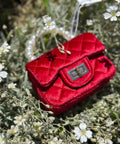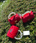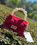 Mini Pearl in red е малка, но изключително стилна чантичка в червено, която придава завършен вид на всяка официална детска визия. Изработена от капитониран текстил с лек блясък, декорирана с елегантна перлена дръжка и фина златна верижка. Затваря се с метален елемент отпред, който добавя луксозен акцент.