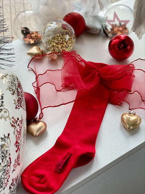 Tulle Kiss Red са сладки чорапки от мек памук. Акцент при тях са панделките от тюл, които добавят романтичен акцент в детската визия.