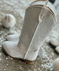 Elly in white - блясък за крачетата на малките принцеси. Тези детски ботуши, посипани с брокат са перфектната комбинация от стил и удобство. Те са с елегантни, с ток, в нежно бяло.