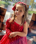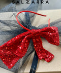 Scarlet Bow е изискан аксесоар за коса- диадема. Голямата панделка от червени пайети допълва визията към роклята от същата серия.