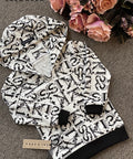 Axel Hoodie е спортно-елегантен модел, изработен от трико. Той е с голяма качулка, с ефектен черно-бял принт с графични елементи, контрастни маншети и колан в черно.
