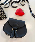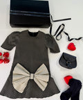 Прекрасен сет - нежна рокля Bow Charm, черна кожена чанта и чорапогащник - дантела в черно.