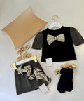 Прекрасен сет - Блуза и пола от серия Golden Bow и чорапогащник - дантела в черно.