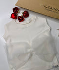 Прекрасен сет - Топ с панделка, чанта с ресни и нежен клипс в nude цвят.