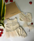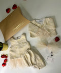 Прекрасен сет - Рокля с бебе гащички, болеро и аксесоар.