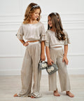 Панталонът Moonlight Glowе е изработен от лека солей материя в сребристо. Свободен модел, с ластик на талията. Изработихме го с мек хастар. Без закопчаване.