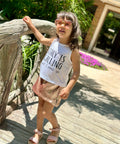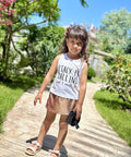Този модерен детски топ без ръкави в бяло е създаден за малките любители на пътешествията и приключенията. Изработен е от мека материя със сладка щампа в предната част.