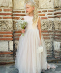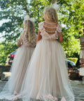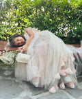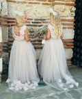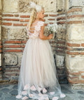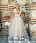 Το Cloud of Love είναι ένα φόρεμα δημιουργημένο για να εντυπωσιάζει με την κίνηση και το στυλ του. Το επάνω μέρος είναι εφαρμοστό, από σατέν σε μπεζ απόχρωση. Η πλάτη είναι διακοσμημένη με λουλούδια σε nude τόνους και λεπτεπίλεπτα κουμπιά από πέρλες. Το κάτω μέρος είναι ιδιαίτερα εντυπωσιακό – μακρύ και ογκώδες με πολλά στρώματα τούλι. Το εκρού και μπεζ τούλι δημιουργούν μια εντυπωσιακή εμφάνιση στο φόρεμα. Μια αληθινή πριγκιπική δημιουργία για τα όμορφα κορίτσια της Salzarra.