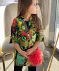 Сакото Urban Muse е изработено от висококачествен жакардов плат с наситен цветен принт в нюанси на зелено, червено, синьо и черно. Моделът е къс, закопчава се с копчета. Съчетайте с полата от същата серия.