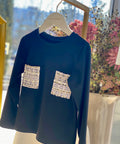 Блузата Purple Royal съчетава комфорт и елегантност. Изработена от мек памук, тя е украсена с малки джобчета от букле плат. Идеален избор за съчетание с полата и палтото от серията Purple Royal.