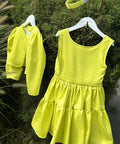 The Neon Breeze accessory is a headband that combines comfort and a modern look. Made of neon green fabric like the dress and bolero from the Neon Breeze series, it is the final touch to the overall look. One size fits all.