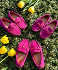 Royal Step is a model of children's moccasins, designed to combine elegance and practicality. Made of soft suede. Available in three colors - cyclamen, brown and blue.