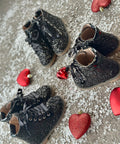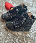 Introducing our exquisite children's boots with brocade shine - Shine Boots in black. A beautiful model in black, with a fine brocade surface and elegant satin laces. Combine with our dresses, skirts or pants.