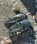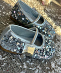 Introducing Sparkle Charm – elegant children's slippers that combine comfort and sophisticated shine. The model is in sophisticated silver with sequins and a buckle.
