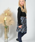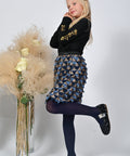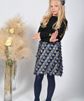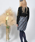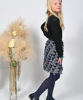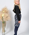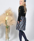 The Glitter Joy skirt is designed to bring smiles. Made of exquisite textile with gold and blue sequins, as well as blue fringe. Elegant cut, comfortable lining, with elastic at the waist.