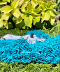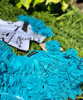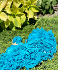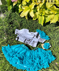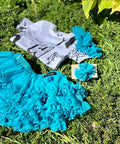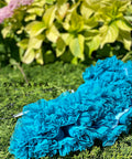 The Urban Wave skirt is made of soft luxurious mesh in a rich blue color. Full skirt, with ruffles and elastic at the waist. It has a lining. Combine with the Urban Wave blouse and add an accessory.