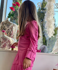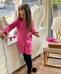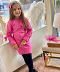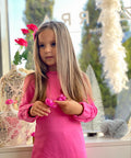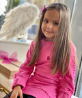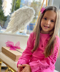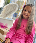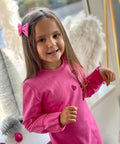 My Mia in cyclamen е създадена за момичета, които обичат комфорта и модерния стил. Изработена от висококачествен памук в циклама. Модел с щампи - бляскави сърца с брокат и отворен гръб с копче. На ръкавите и в долната част е с ластик.