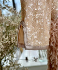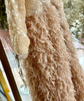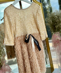 Soft Éclat Beige dress with feathers and sequins