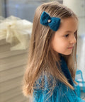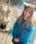 The Teal Whisper dress is made of soft and stretchy knit in petrol color. It has a round neckline, loose fit. Spectacular sleeves with tulle along the entire length complete the overall look.