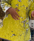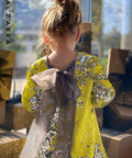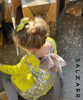 The Golden Bow Sparkle dress is made of fabric sprinkled with a beautiful yellow/silver color. The large organza ribbon placed on the back is the final accent that turns the model into a symbol of festive luxury.