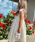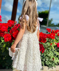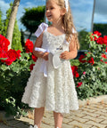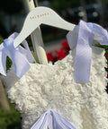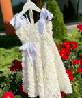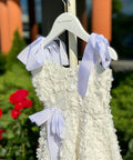 Sugar Baby е рокля, изработена от висококачествен бял плат с 3D флорална текстура. Силуетът е леко разкроен, удобен и ефирен. На раменете се връзва на нежни панделки. В талията също е с панделка от рипс сатен в бяло.