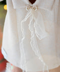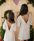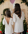 You will love it, it is Sugar Glow. Made of soft and elastic knit in cappuccino color with golden threads. The back is open and decorated with a ribbon of delicate tulle with a golden element. The sleeves are slightly voluminous, the silhouette is free and comfortable.