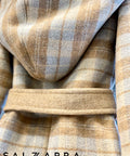 Caramel Whisper is a warm coat made of soft wool in delicate caramel-beige shades. Model with a large hood with eco-leather. The lower part is asymmetrical, with an elongated back and ending with eco-leather. The coat has a belt. Combine with the skirt from the same series.