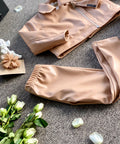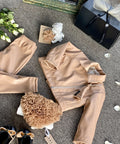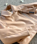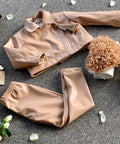 Children's jacket made of high-quality eco-leather in a sophisticated nude shade in a sporty-elegant style. A spectacular accent is the asymmetrically placed zipper. Easily combine with leggings made of the same fabric or other clothes from our collection.