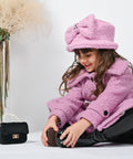 The Lilou hat is made of woolen bouclé fabric in a beautiful shade of lilac. The elegant ribbon, decorated with fine black pebbles, gives the accessory an elegant finish. Gentle, stylish and cozy - it is designed to perfectly complement the Lilou coat.