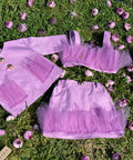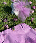 The Violet Charm skirt combines the comfort of cotton and the softness of tulle. The violet base is highlighted with soft tulle layers. The skirt is shaped with a classic jeans design - with pockets and violet decorative stitching. The model is suitable to be combined with the top and jacket from the series for a complete look.
