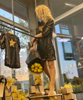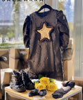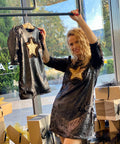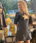 Starry Glow Black Sequin Dress with Gold Star