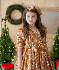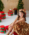 Aurelia Crown is an exclusive hair accessory designed to complete your child's festive look. Made of fabric with fringe and sequins. The ribbon can be placed on a tiara, a clip and a baby elastic.
