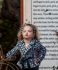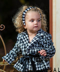 Детски жакет от мекичка и пухкава материя. Той е в черно-бял пепит, в талията е с кожен колан. Стилен и функционален модел.